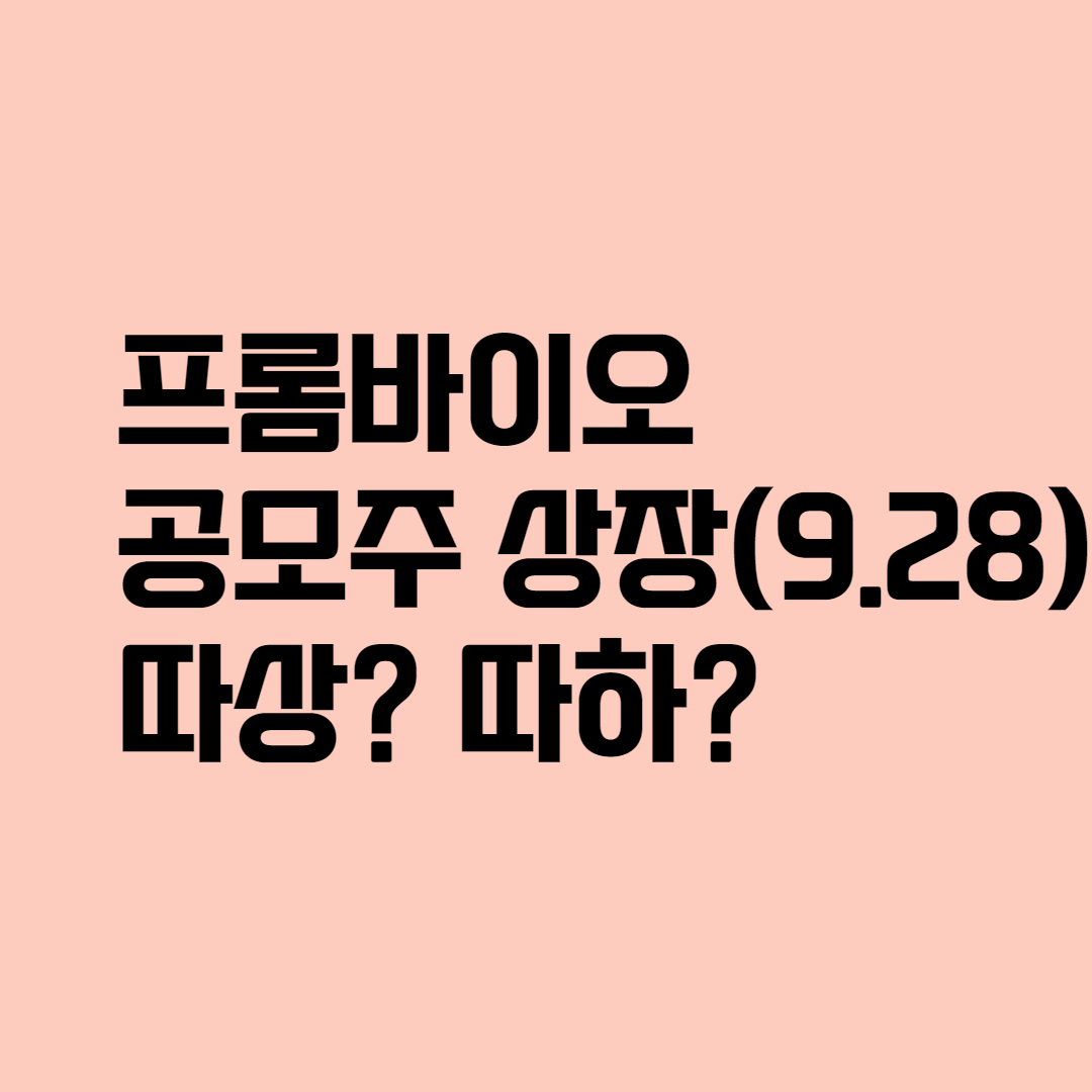 내일 9.28(화)에는 프롬바이오 공모주가 상장을 준비하고 있습니다. 상장에 앞서 공모과정을 리뷰해보고 상장일 어떤 전략으로 접근할지에 대해서도 고민해보도록 하겠습니다.