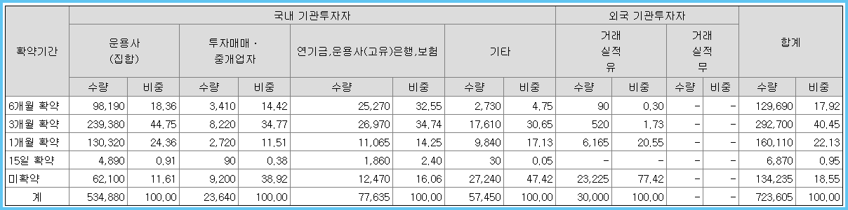 기관투자자에게 배정된 미확약 비율은 18.55%로