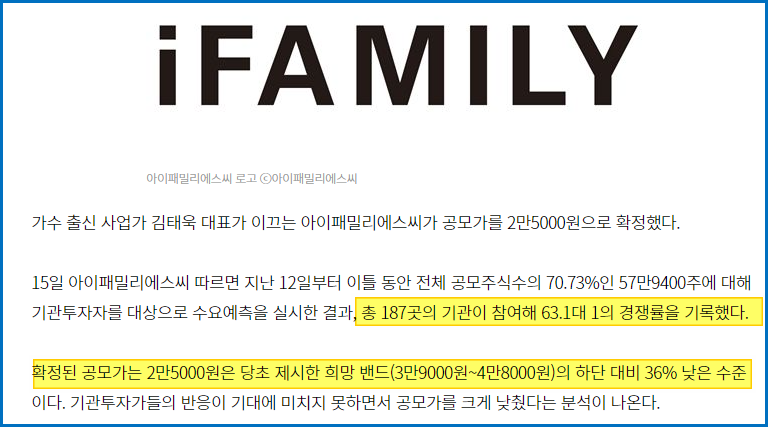" 아이패밀리에스씨 공모주 청약 할까?