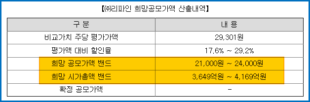 리파인의 공모주식은 100% 신주모집으로 진행됨