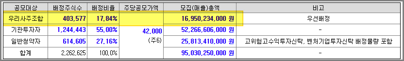 우리사주 17.84%를 제외한 82.16%를 일반공모