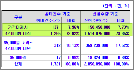 신청수량중 42,000원 이상 가격을 제시한